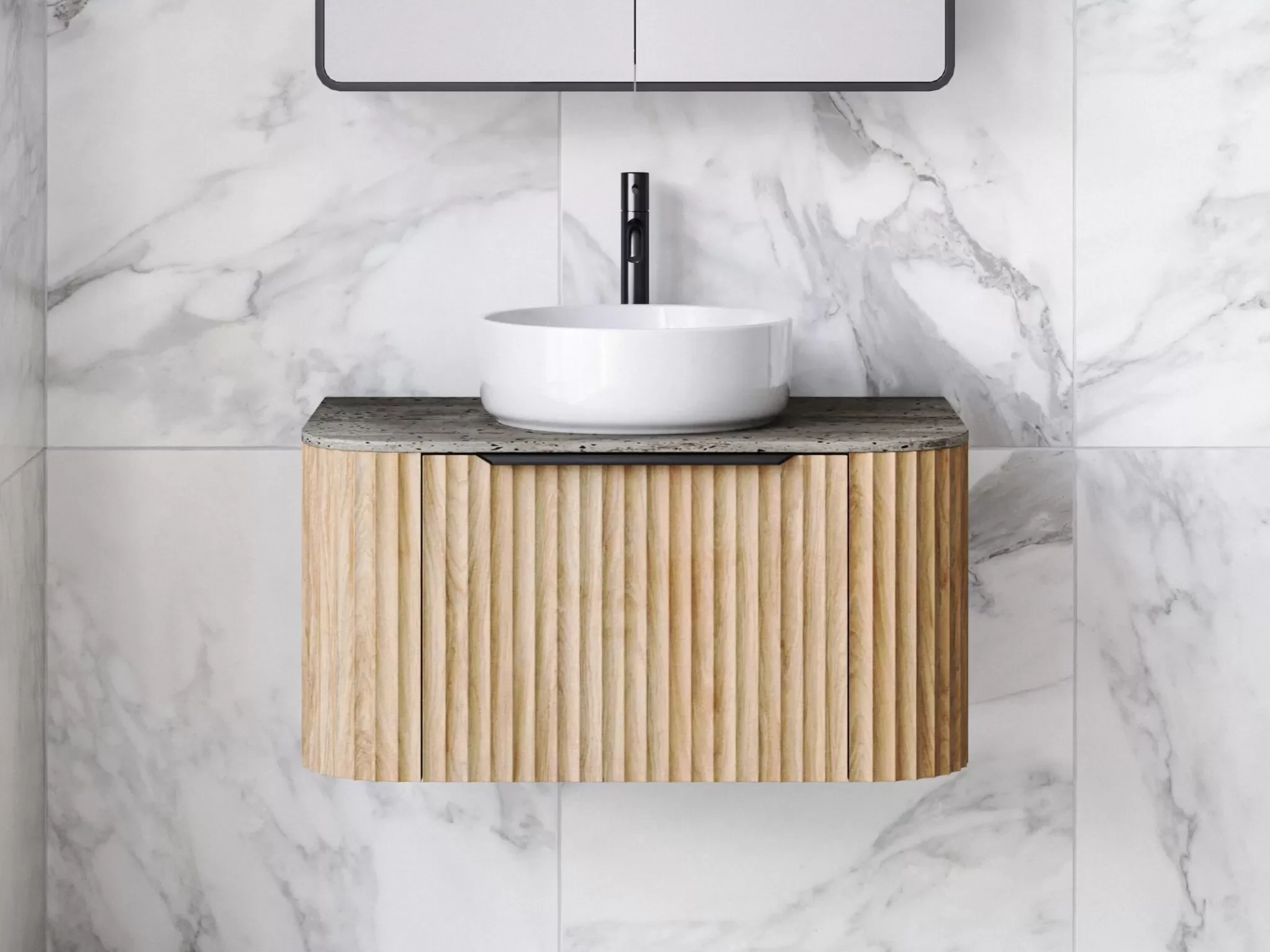 Discover the Santos vanity, a coastal embodiment of charm. With its distinct designer touch, this vanity redefines elegance with it’s curved ends, adding softness to your bathroom space.