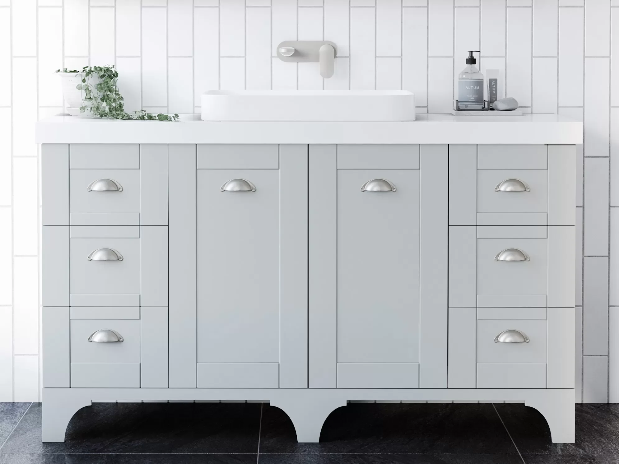 60mm SilkSurface Freedom slab top with above or under-counter ceramic basin/s